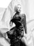 Горната част е от мека мрежа с високо деколте, едно рамо и ръкав.