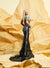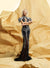 Впечатляваща черно-сребриста русалка, изработена от мека еластична мрежа с високо деколте и поло яка.