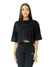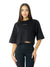Модерна и удобна къса тениска в черно с надпис от камъни RADICHEV за изразителен и бляскав акцент. Перфектен избор за ежедневно носене с дънки или панталон с висока талия.