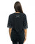 Women's oversized black T-shirt with RADICHEV stone inscription and pearl decoration on the sleeves. Suitable for both daytime combinations and more sophisticated looks.